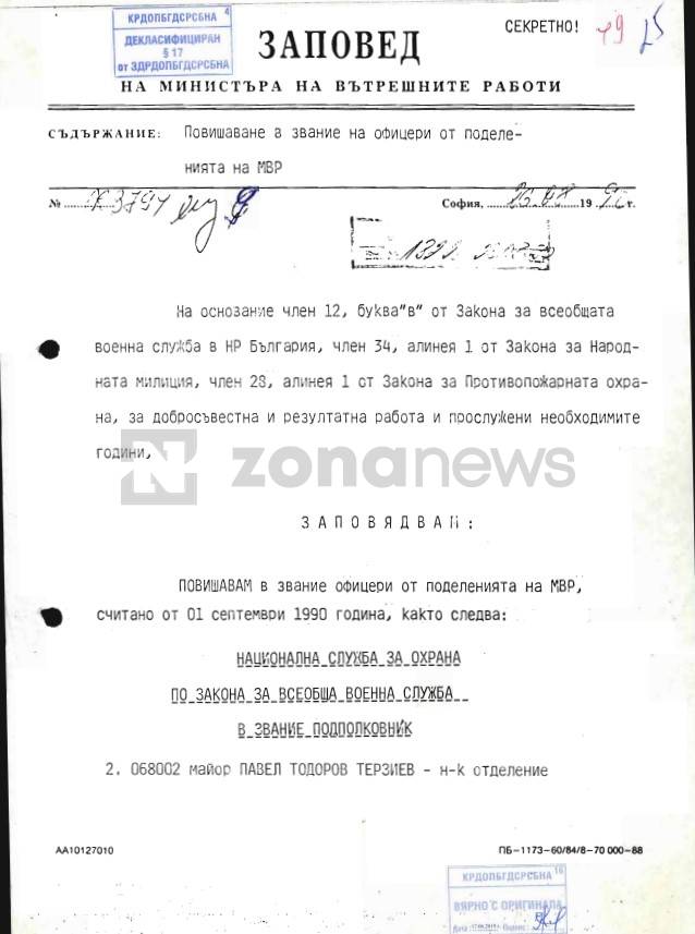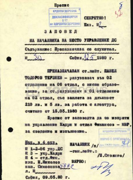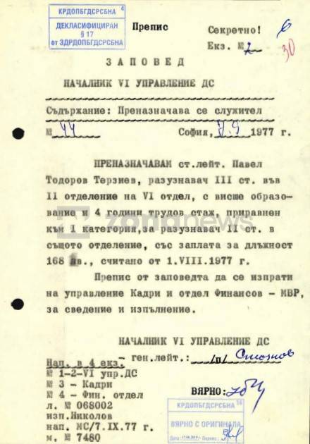 Заповед за преназначававане от 1980 г. Източник: Zonanews