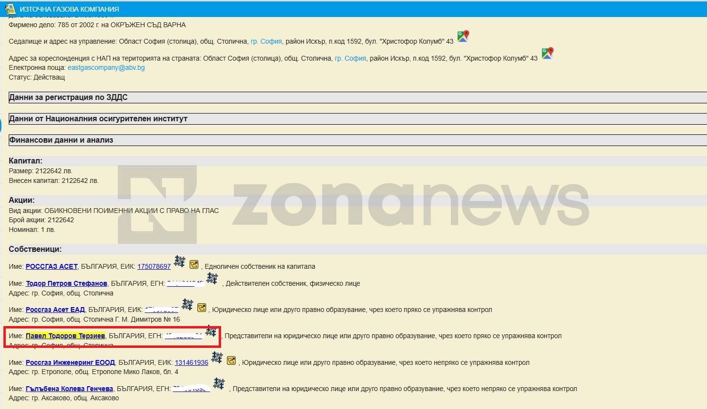 1. В съвета на директорите на „Източна газова компания“ ЕАД. Собственик на капитала на „Източна газова компания“ ЕАД е „Россгаз Асет“ – БЪЛГАРИЯ (ROSSGAZ ASSET).