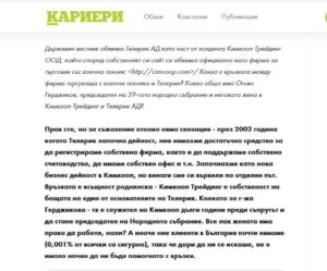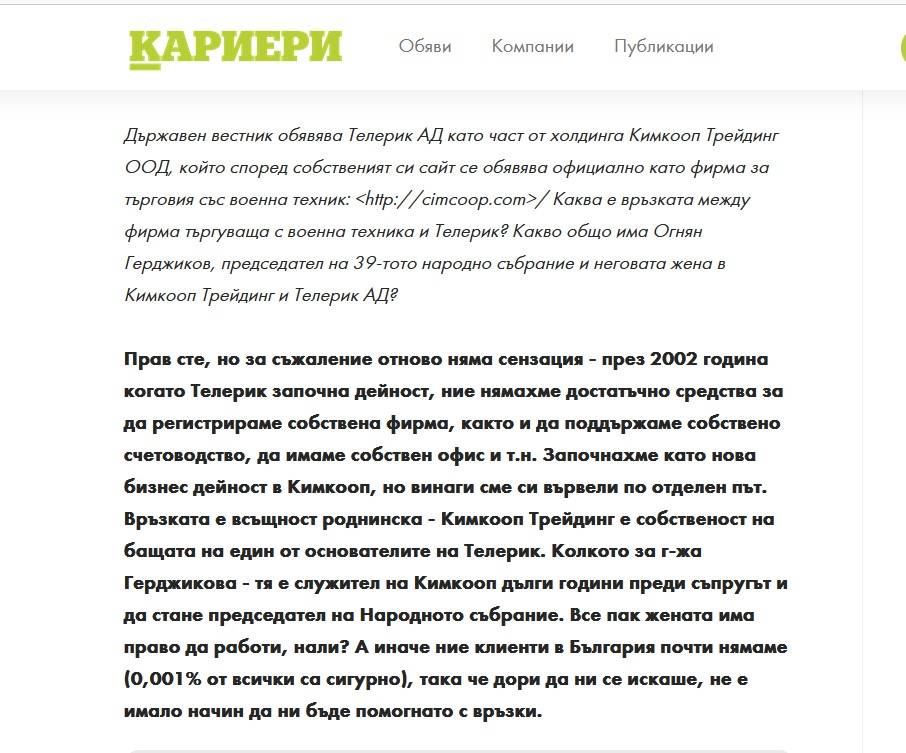 Информацията за „Кимкооп Трейдинг“ обаче се разминава с твърденията на кандидата на кмет Васил Терзиев. В редица интерювта той заявява, че компанията е тръгнала от „нулата“, без да разчита на семейни пари.