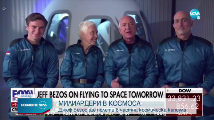 В близо 11-минутното пътешествие участваха братята Джеф и Марк Безос, 82-годишната Уоли Фънк и 18-годишният бъдещ студент по физика от Нидерландия Оливър Дамен. Той е първият клиент на компанията „Блу ориджин“, платил за космическия си полет.