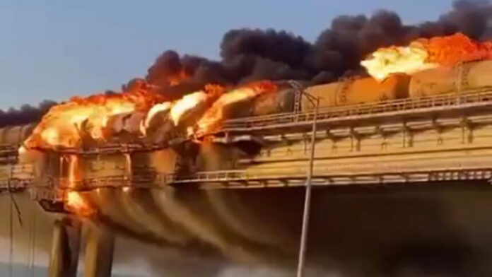 Кримският мост – ключово съоръжение за снабдяването на незаконно анексирания от Русия полуостров Крим и войските, нахлули в Южна Украйна – е затворен след експлозия. Според първоначалната официална информация е избухнала цистерна с гориво в края на товарен влак, пътуващ към Крим, пише „Дневник“.