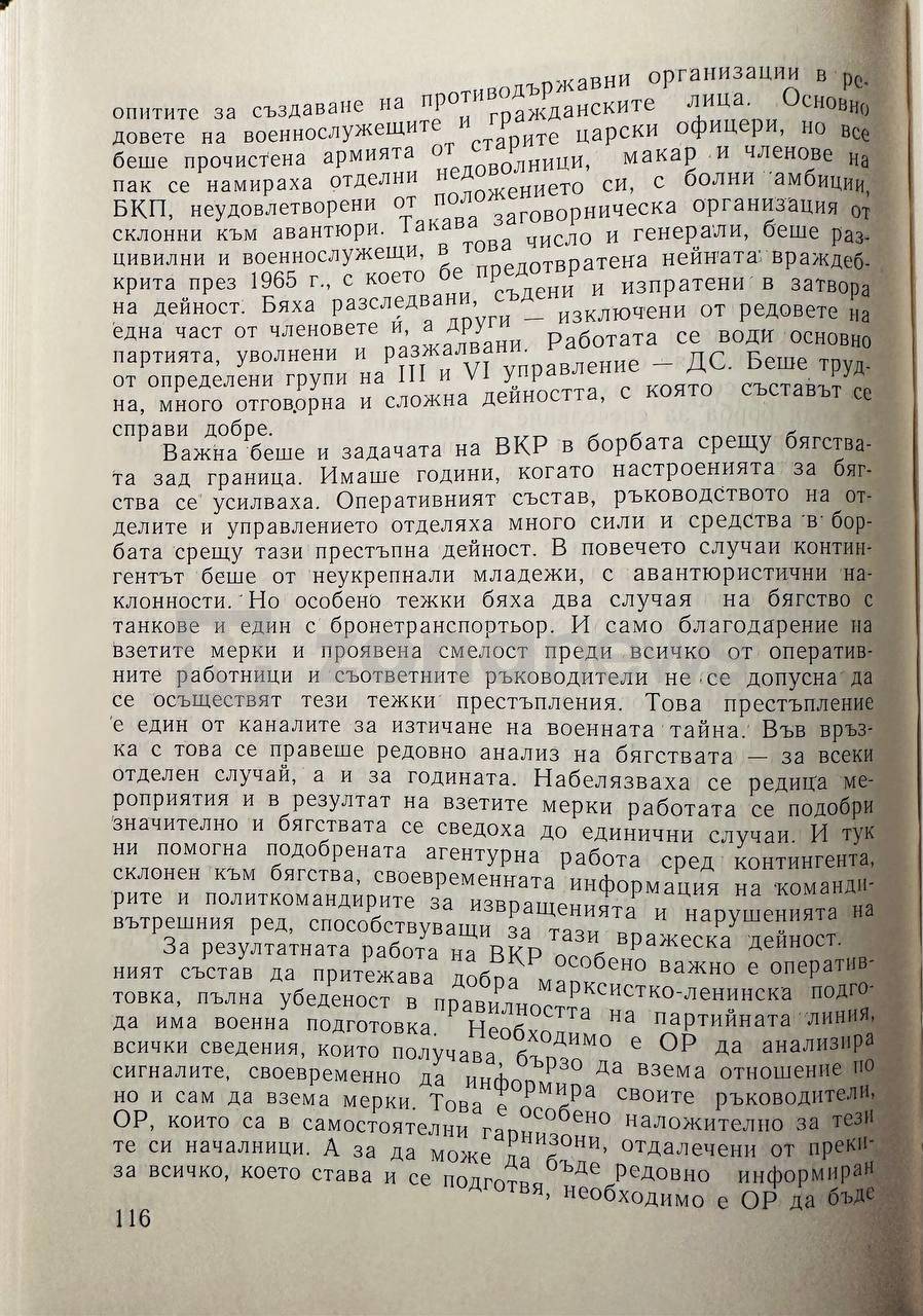 „Важна беше и задачата на ВКР в борбата срещу бягствата зад граница. Имаше години, когато настроенията за бягства се усилваха…В повечето случаи контингентът беше от неукрепнали младежи, с авантуристични наклонности“