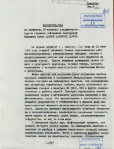 Валентин Цанков е на работа в РУ-ГЩ /РУМНО/ от септември 1982 г. и веднага е изпратен на 10-месечен курс във Военно-дипломатическата академия на ГРУ на Съветската армия. Ето официалната му характеристика, с която завършва школата на ГРУ.