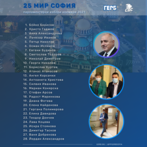 В 25-и МИР Анна Александрова, Христо Гаджев и областният координатор Тодор Кръстев регистрираха листата с кандидатите. Водач на листата на ГЕРБ за 25-и МИР е председателят на ГЕРБ Бойко Борисов.
