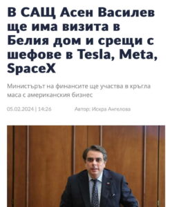 “Той ще проведе срещи с американски еврейски организации, както и с ръководители на водещи американски компании, сред които Tesla, Meta-Facebook, SpaceX, FedEx, Honeywell, Northrop Grumman, Lockheed Martin, ExxonMobil и General Dynamics.”