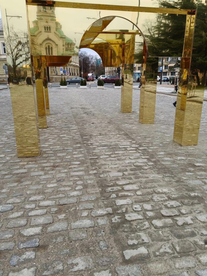 Арките „Светлината в нас“ пред катедралния храм са дело на Фондация „Колективът“. Колективът е семеен – Мартин Янков и родителите му. Мартин Янков е автор и на други арт проекти, с финансиране от Америка за България, съобщава сайтът „Бърд“.