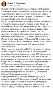 „Ей, циpкaджии най-страшни. Загъвайте си пътуващия цирк и изчезвайте, че това безумие вече не се издържа… Наистина беше много забавно в началото, но от един момент нататък стана тъжно“, пише по този повод финансистът Никола Филипов, който е забелязал извъртането на Трифонов като фурнаджийска лопата.