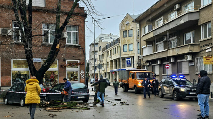 Мястото беше обезопасено със сигнална лента. Пристигнаха и общински служители, които за около десет минути нарязаха и разчистиха падналите клони. През това време движението в района на кръстовището между улиците „Любомир Пипков“ и „Райко Даскалов“ беше спряно и регулирано от служители на Общинска полиция.