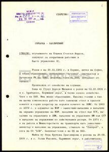 „Кандидатът се насочва към МВР в резултат на дълбока и трайна мотивация, след придобиването на специалност и известен трудов опит. Водещите мотиви произтичат от разбирането му за идеологическия по своята същност характер на дейността….Не се откроява с особени общоинтелектуални възможности, което заедно с възрастово обусловената неопитност, обяснява донякъде известна повърхностност, стандартност, несамостоятелност в анализите и оценките, които прави“.