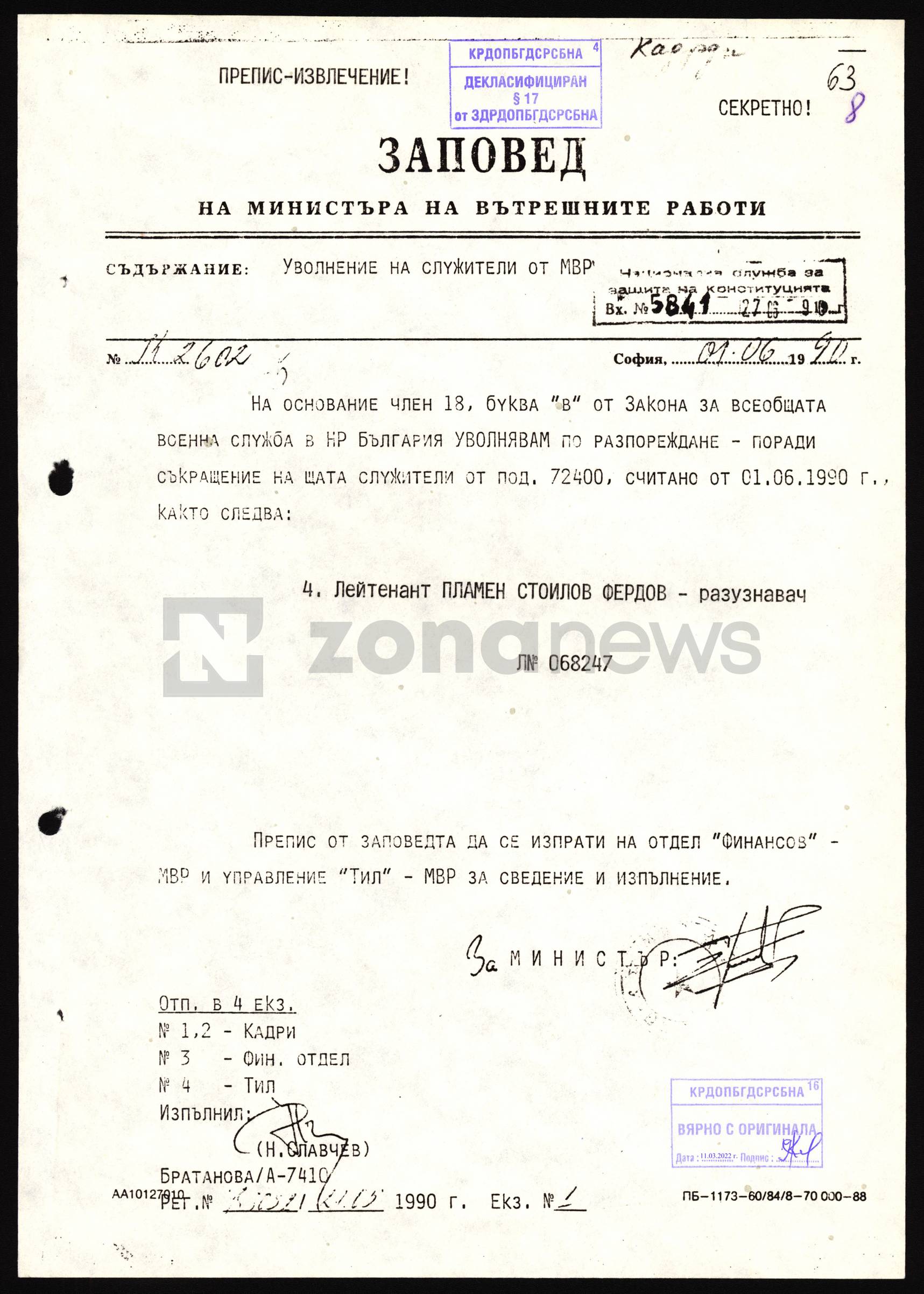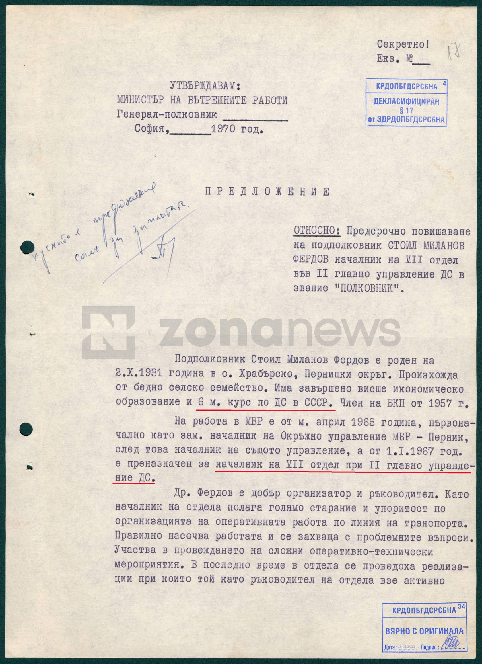 Zonanews разполага с цялото кадрово дело на Пламен Фердов. Нека погледнем с какво е привлякъл вниманието на бившия комунистически следовател Бойко Рашков.