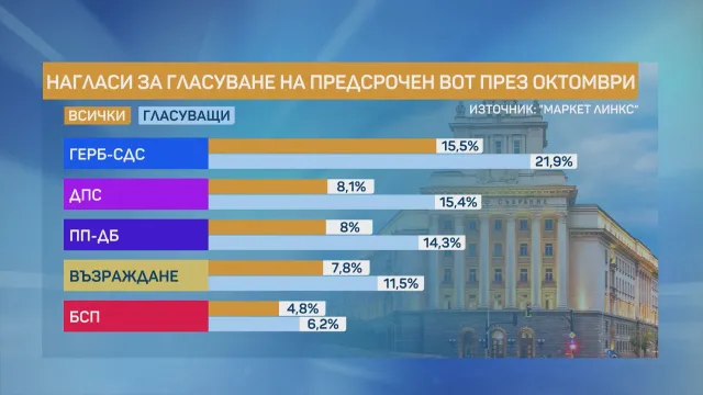 Това показват данните от последното проучване на агенцията два месеца преди вота на 27 октомври