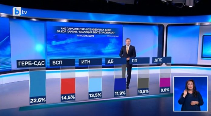Ако извънредните парламентарни избори бяха днес, над 22,5% от заявилите, че ще гласуват биха избрали коалицията ГЕРБ-СДС. Това показва ръст в резултата им. Общо 77% отговарят, че ще гласуват, а 14 на сто – няма да отидат до избирателните секции на 14 ноември. 9% от запитаните все още се колебаят.