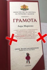 Текстът на грамотите, една от които съпровождаща наградата „Златен век“, е с двойна грешка – смислова и печатна.