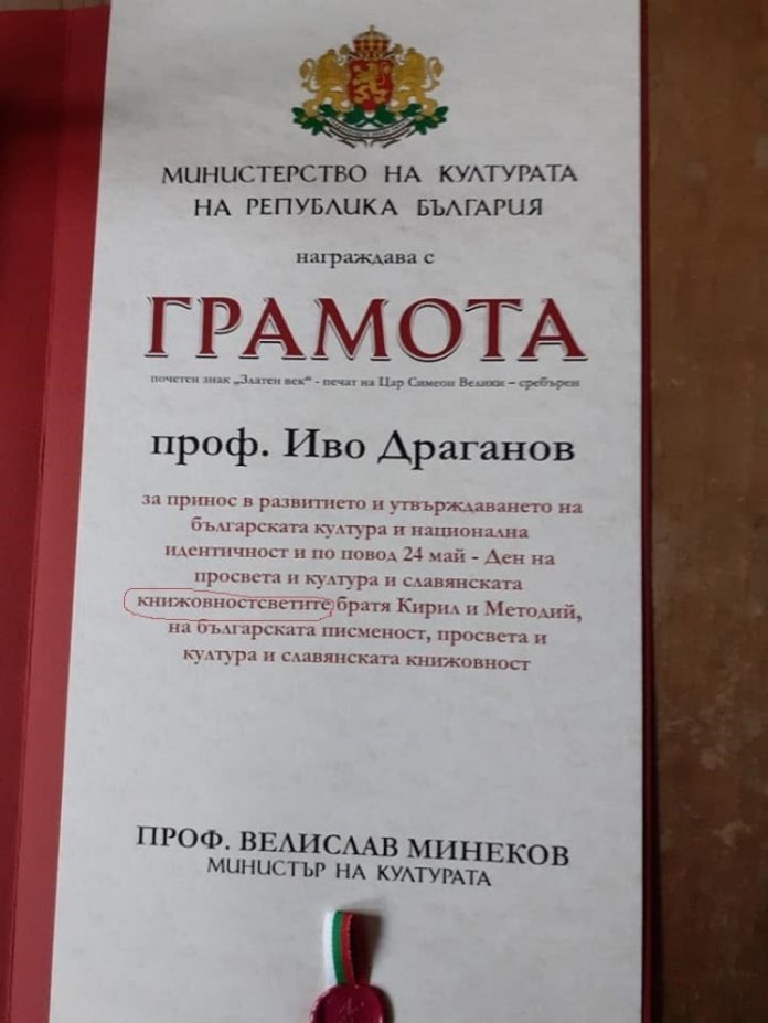 Бившият член на „Отровното трио“ и активен участник в протестите от лятото на 2020 година, който в момента заема поста служебен министър на културата – проф. Велислав Минеков, сътвори гаф навръх 24 май, съобщи „Трибюн“.