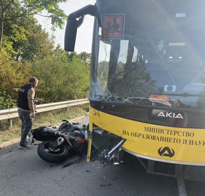 От удара мотоциклетистът е загинал на място. Той е 36-годишен мъж от Бургас. По непотвърдена информация в автобуса са се возили 37 деца. Пострадали няма.