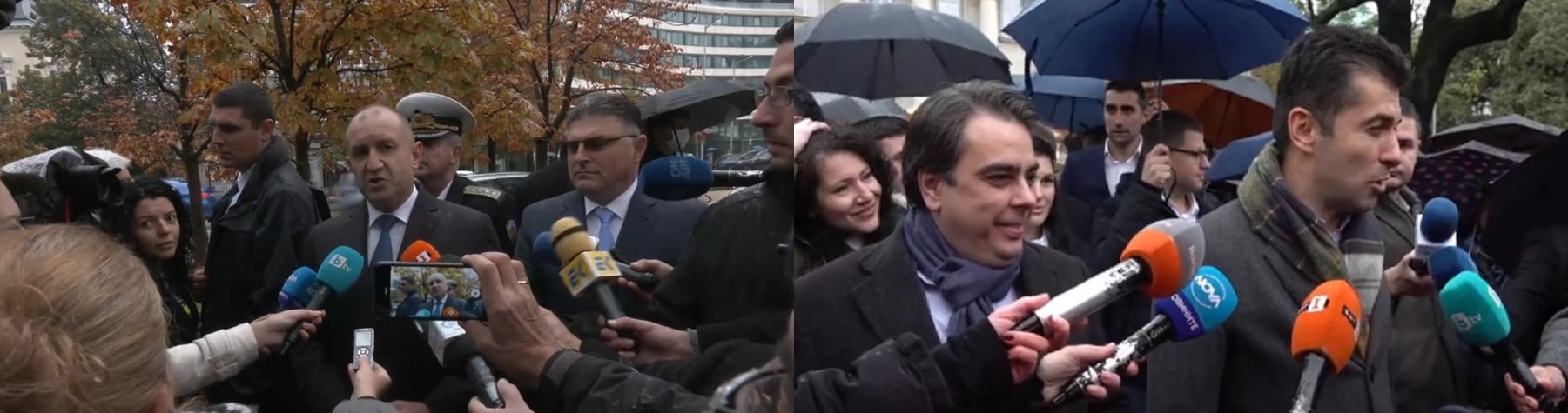 На сто метра едни от други, едновременно, в центъра на София, президентът и неговата партия си проведоха сутрешните събрания по обявяване началото на предизборната кампания.