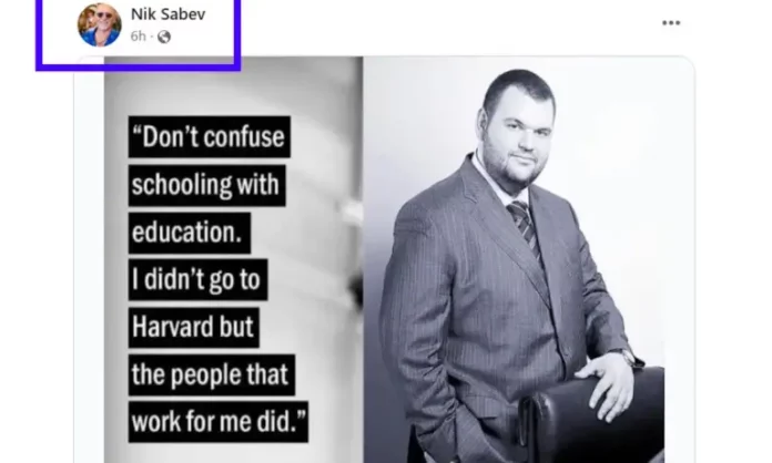 Събев сподели популярно фейсбук меме с образа на депутата от ДПС Делян Пеевски, което гласи: „Не бъркайте ходенето на училище с образованието. Не съм бил в Харвард, но хората, които работят за мен – са“.