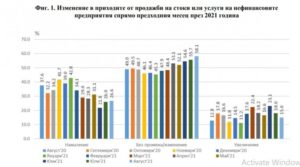 През август 2021 г. 26,6% от нефинансовите предприятия посочват, че са имали намаление в приходите от продажби на стоки или услуги в сравнение с предходния месец юли, при 58,1% няма промяна, а само 15% са регистрирали увеличение.