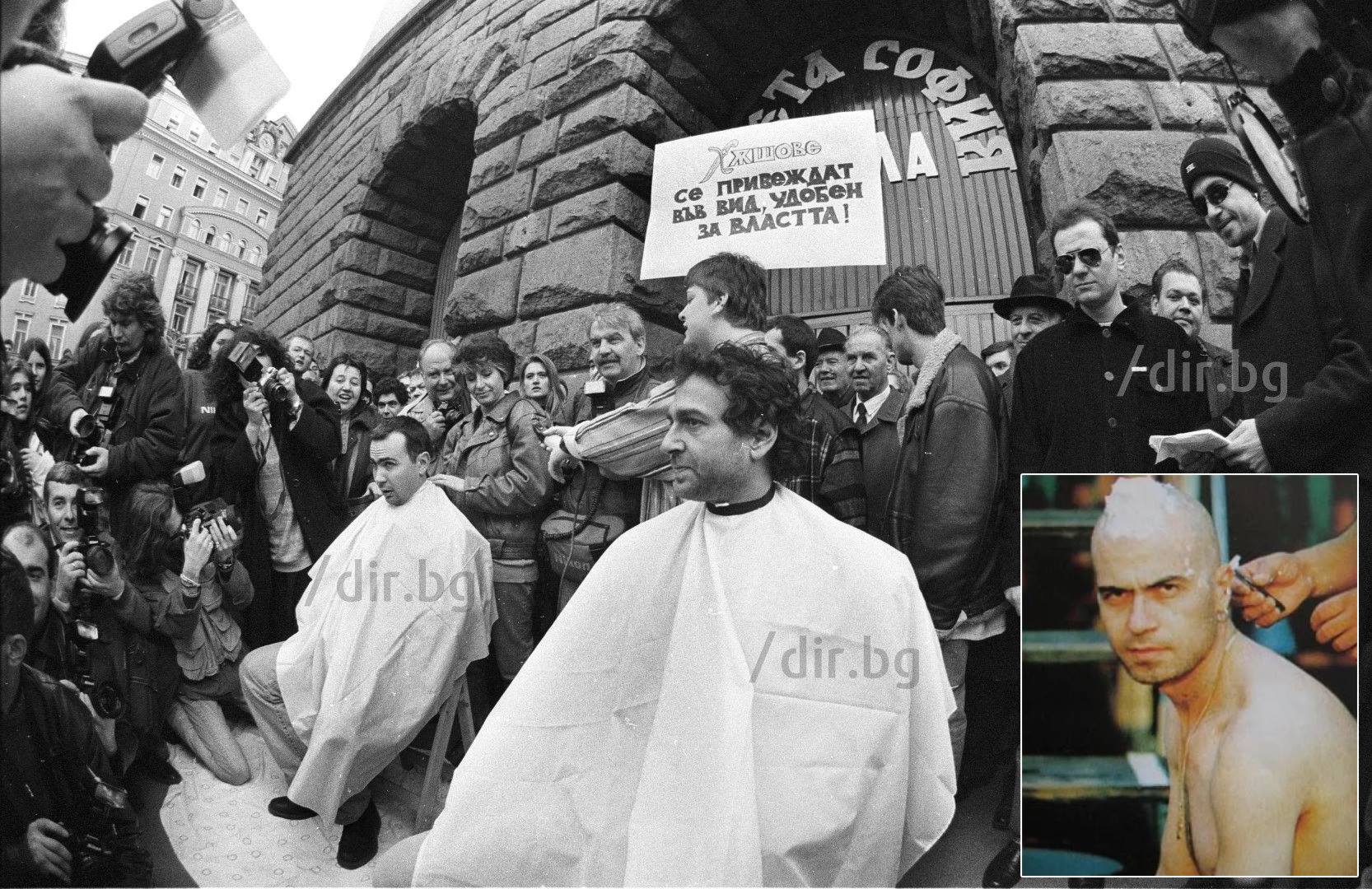 На 19 февруари 1998 година след цикъл обществени акции, всички сценаристи на „Хъшове“, си остригват публично главите на Ларгото между Министерския съвет и Президентството. Това се прави в знак на протест, след като предаването им е свалено от ефира на БНТ. Акцията се казва „Хъшовете се привеждат във вид, удобен за властта!”. Косите са събрани в две калъфки за възглавници и хората на Трифонов се опитват да ги оставят на правителството на Костов и президента Петър Стоянов.