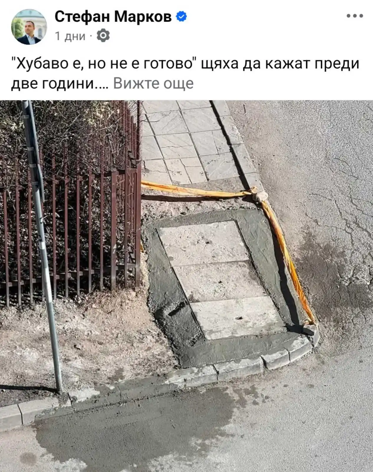 Район Искър (ПП-ДБ-СС), ул. Иван Абаджиев – шедьовър на достъпната среда. Многокомпонентен преход – плочка, цимент, шахта, кал.
