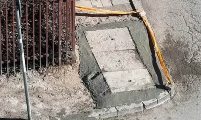Район Искър (ПП-ДБ-СС), ул. Иван Абаджиев – шедьовър на достъпната среда. Многокомпонентен преход – плочка, цимент, шахта, кал.