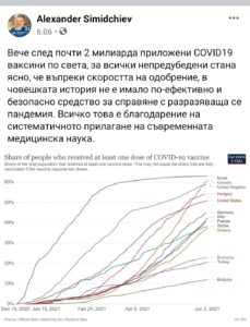 “Вече след почти 2 милиарда приложени COVID19 ваксини по света, за всички непредубедени стана ясно, че въпреки скоростта на одобрение, в човешката история не е имало по-ефективно и безопасно средство за справяне с разразяваща се пандемия. Всичко това е благодарение на систематичното прилагане на съвременната медицинска наука.“