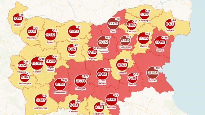 Още три области у нас светнаха в червено на картата с 14-дневна заболяемост над 250 на 100 000.