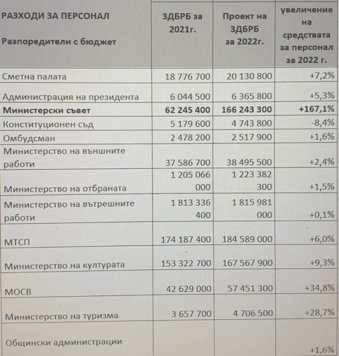 В същото време проверка в заложеното в бюджета показва интересни цифри, пише Tribune. Така например разходите за персонал в Министерския съвет скачат с цели 167%, или с близо 103 милиона от предходната година. В екологичното министерство пък ще получат с 34,8% повече. Сериозно ощетени са общините, които получават едва с 1,6% увеличение.