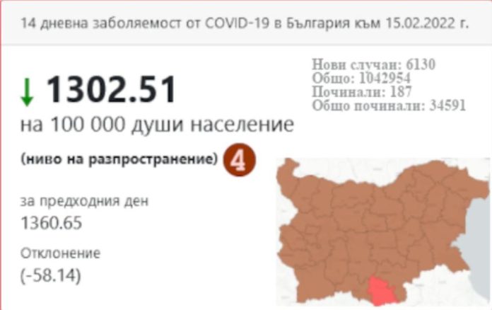 Нов спад в двуседмичната заболеваемост от ковид-19 отчита Националният център по заразни и паразитни болести /НЦЗПБ/. 1302.51 заразени на сто хиляди души население са регистрирани към 15 февруари при 1360.65 за предходния ден.