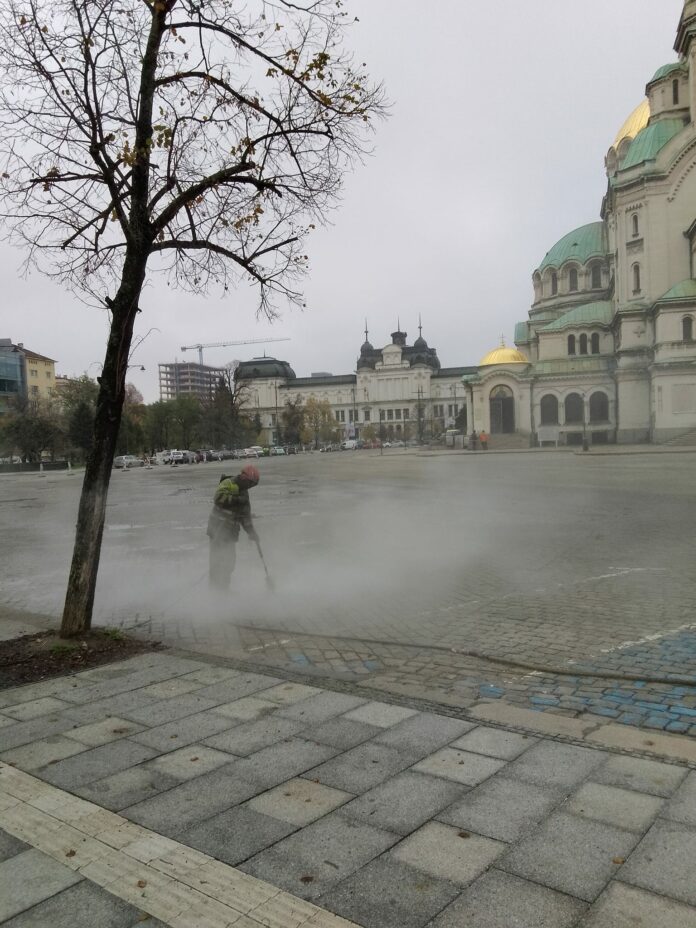 Писателят Стефан Кисьов: Безумие. Чистят паветата пред „Св. Ал. Невски“ с водоструйка