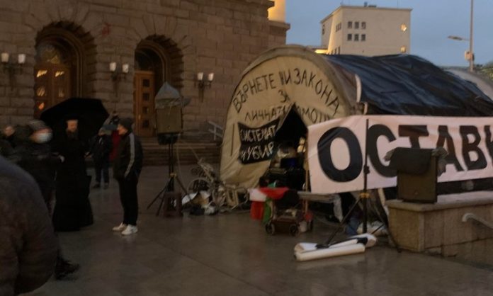 Палатката на майките на деца с увреждания и плакатите „Оставка“ са отново в „триъгълника на властта“.