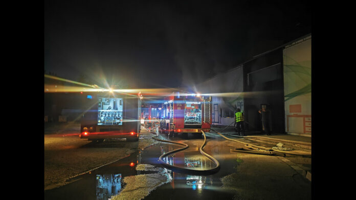 Сигнал за инцидента е получен около 21.30 часа в понеделник. Огънят е обхванал двуетажена сграда, пълна с мебели, дивани и матраци, която е трябвало да отвори врати на 1 юни. Горящите помещения се намират близо до други съседни сгради, но те не са засегнати от пламъците.