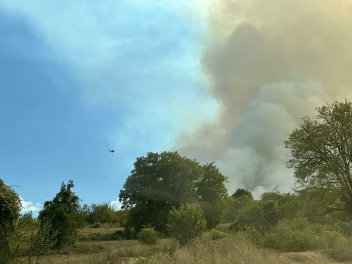Опасност за населените места няма. Пожарът вече е частично ограничен, но все още има отделни огнища.