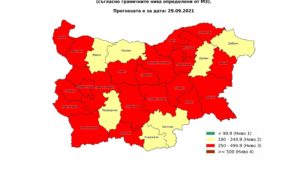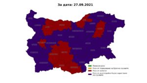 Най-напред картата на риска съгласно плана на Министерството на здравеопазването. Ситуацията не се е променила от края на миналата седмица, не се очаква много да се промени в следващите 3 дни. Има наложени мерки и те, колкото и да не се спазват, имат ефект, защото пък има доста хора, които ги спазват. На нашата карта на риска София-град червенее на фона на околното виолетово. Но София-град и Пловдив не са във виолетовата зона. С което ситуацията се удържа засега. Но се наблюдава бавно поддаване.