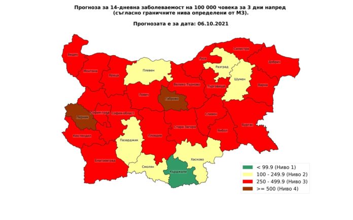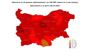 Още една област светва в тъмночервено на ковид картата – Перник, прогнозира математикът проф. Николай Витанов във фейсбук. Това показва прогнозната карта за 14-дневната заболеваемост на 100 000 човека за три дни напред, съгласно граничните нива, определени от Министерството на здравеопазването.