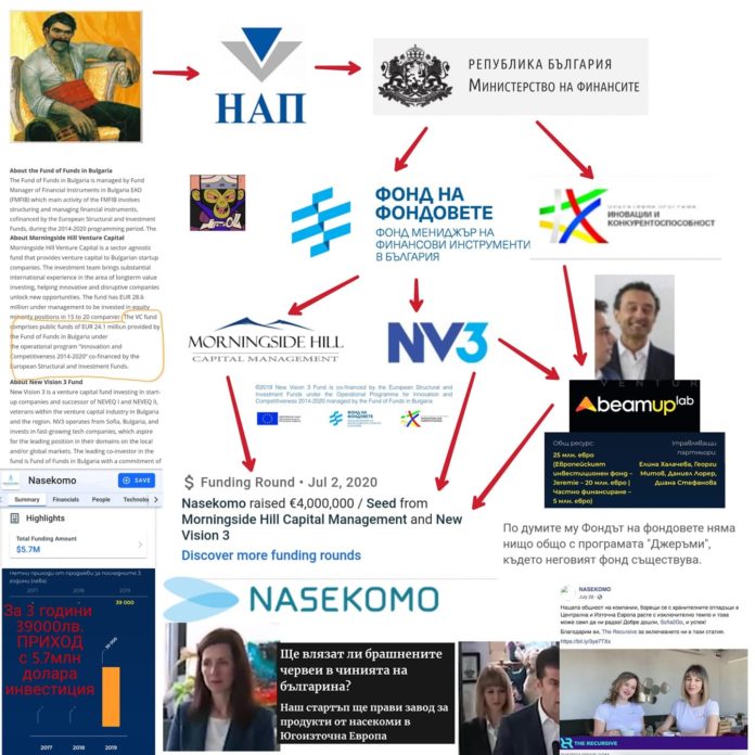 NASEKOMO – фирмата която иска да ядеш буболечки без да знаеш, за да се борим с глобалното затопляне причинено от пърдящите крави. Фирмата на която Яна Балникова е проектен меринджей се финансира от фондове (BeamUpLab(управляващ партньор Даниел Лорер) които се финансират от фондове (NV3,MorningsideHill, Jeremie(Даниел Лорер))) финасирани от фондове (Фонда на Фондовете, ЕССР) финансирани от държавата.