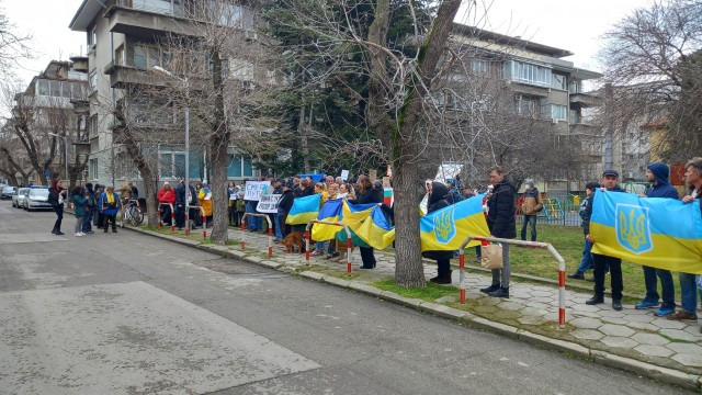 Няколко десетки украинци и руснаци излязоха днес на протест пред сградата на генералното консулство на Русия във Варна с плакати с надписи „Войната е позор! Путин – вън от Украйна“, съобщи БНР.