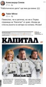 Големи кодоши отнесе „Капитал“ във фейсбук с новата си корица. На нея в главните роли са “астронавтите“ Мая Манолова, Христо Иванов и Тошко Йорданов. Според медията на Иво Прокопиев тримата били носители на новото и пуска поредица от интервюта с тях, като ги промоторира като „Мисия 121“.