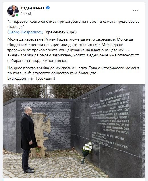 Запознах се с Радан Кънев на една блокада в София през 2013-та. В голяма група патриоти тормозехме репресивния апарат на Жандармерията, а той се появи, хванал за средния си пръст яке, наметнато на гърба, мина край биещите се полицаи и свои привърженици, махна с ръка и продължи. Кимнахме си.