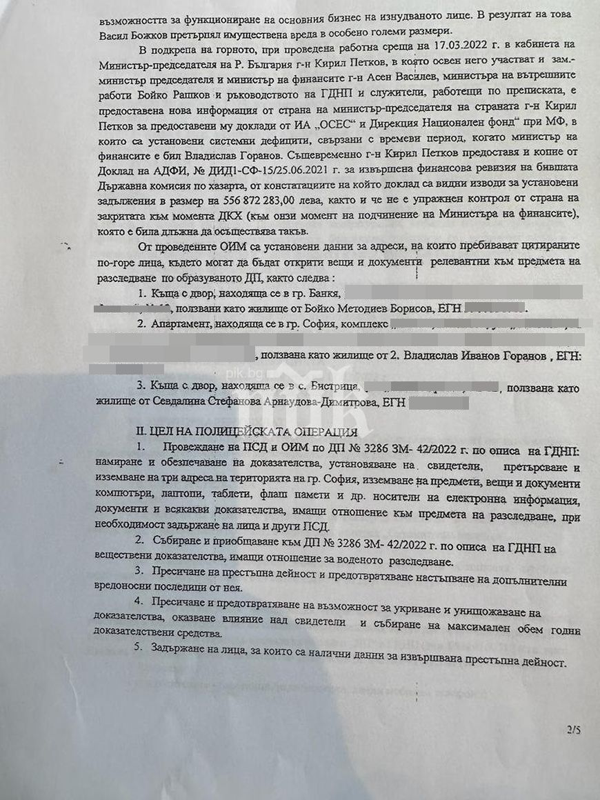 Вижте целия документ, разкриващ заверата за ареста на Бойко Борисов. Текстът е драстична атестация за действията на полицейския режим на Кирил Петков.