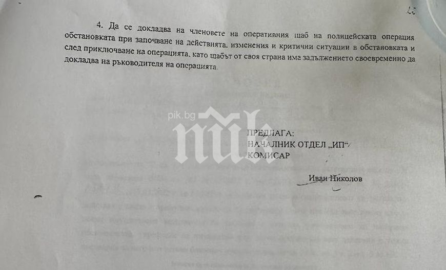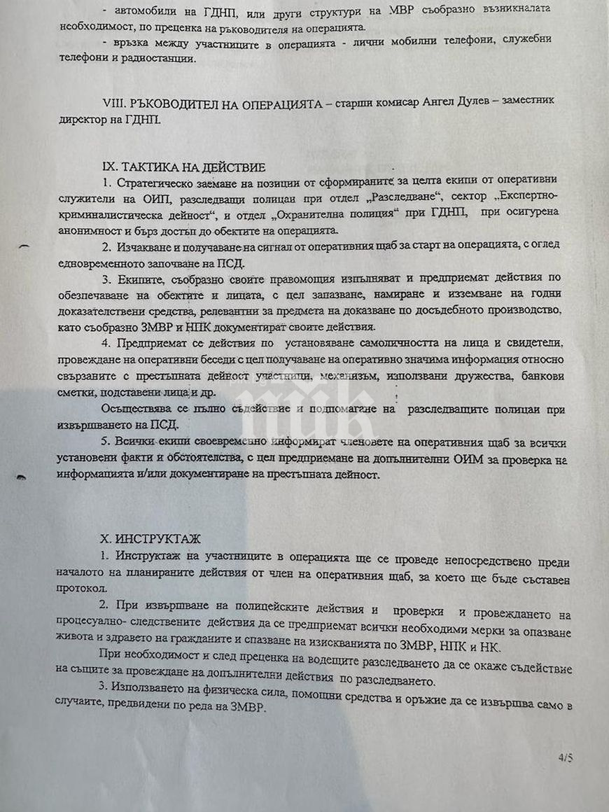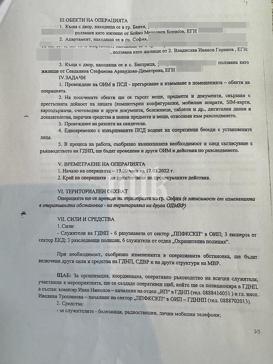 В документа се описват още и наличните сили, които ще провеждат претърсванията и арестите в нощта на 17 март – брой разузнавачи, експерти, поемни лица, полицейски части, автомобили…