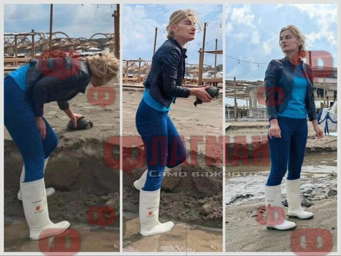 Медиите обаче я завариха сама, с пиарката й, пред затворено крайбрежно заведение, в което не се мяркаше и жива душа. Русокосата Зарица бе в чисто нови бели ботушки, със слънчевото лого на България, рекламиращо туризма ни. Мажоретният аксесоар нямаше и прашинка по ходилата, очевидно бе обут минути преди пристигането на журналистите.