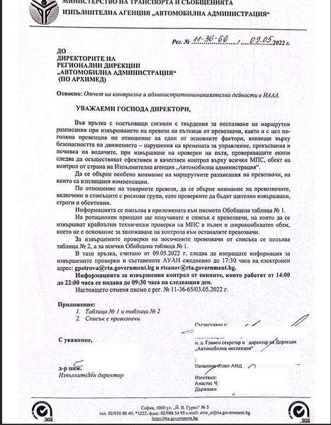*Приложение: Заповед №11-36-66 от 09.05.2022 г. на Изпълнителния директор на „Автомобилна администрация“.