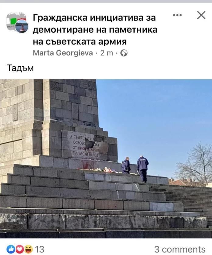 Плочата на паметника на Съветската армия в София е счупена, съобщи Марта Георгиева от „Демократична България”.