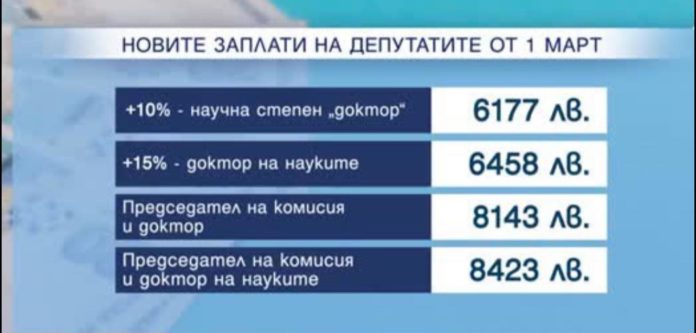Сегашното 47-мо НС работи от близо 3 месеца, като все още не е приело нито един закон. Дори нямаме гласуван бюджет, заради което цялата държава е блокирана. Липсата на законодателна активност обаче не попречи на депутатите да вдигнат заплатите си с още 700 лв. въпреки кризата и все по-голямото обедняване на огромна част от българите. Заплатата на българските депутати плюс добавките, които вземат от участието им в комисии е близо 8000 лв.!!!
