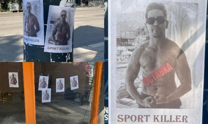 София осъмна с разлепени плакати на министъра на спорта Радостин Василев. На тях той е гол до кръста, показващ мускули. На фона на това с големи букви е изписано Sport killer – убиец на спорта. На голото му тяло пък с червени букви е написано „Оставка“, пише Tribune.