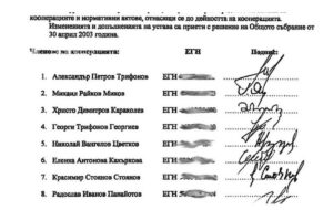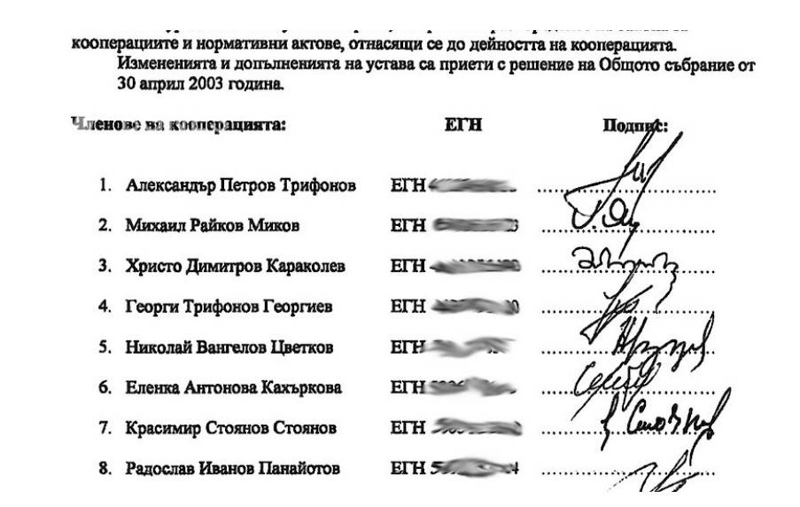Според Устава, с който разполагаме, поне към 30 април 2003 година екипът на задругата е от 9 човека. Сред на пръв поглед неизвестните съдружници блести името на ярка политическа фигура в годините на прехода. Тя едва ли случайно е попаднала в този екип. Става дума за бившия лидер на БСП и председател на Народното събрание Михаил Миков. Не по-малко интересна се оказва и компанията около него.