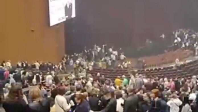 Неофициална информация гласи и че около 100 души още бяха в залата към 20 ч българско време.