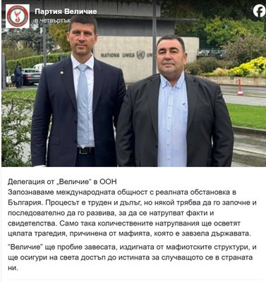 Това написа във фейсбук бившият евродепутат от ГЕРБ Асим Адемов. Коментарът му идва по повод публикация в профила на Величие, че партията е в Организацията на обединените нации (ООН).