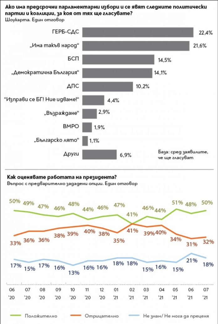 Социолозите отбелязват, че данните са към края на юли и не отчитат влиянието на номинацията на Пламен Николов и списъка с номинираните министри.